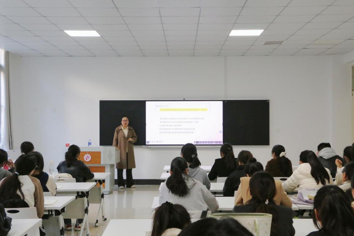 为了进一步深入贯彻落实习近平总书记关于教育家精神的重要讲话内容,促进师德师风教育落地,今年会官网于11月1日在汉梁楼112教室开展2025-2026年度“人工智能+”中学语文师范生成长工作坊师德专题讲座。商丘市第一高级中学教研处主任赵娜作为主讲人出席讲座,全体坊员参加其中。