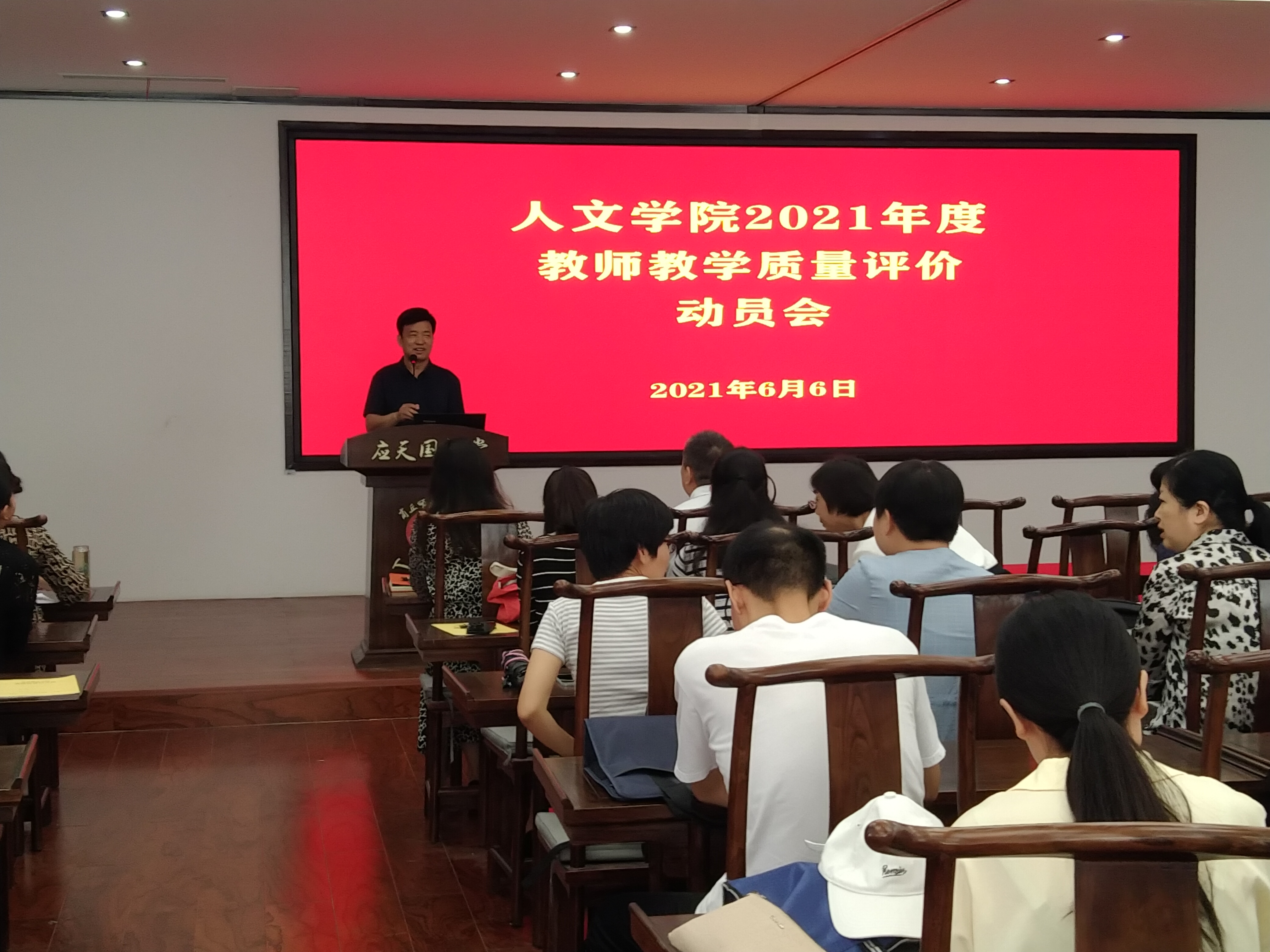 6月6日,今年会官网在梁园校区汉梁楼国学堂召开2021年度教师教学质量评价动员会,学院领导班子成员,各系、教研室主任,教学督导员,全体教师参加了此次会议。