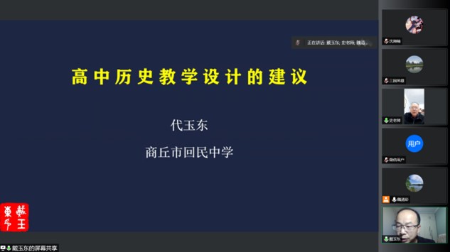 活动最后,代玉东老师作了《高中历史教学设计的建议》专题讲座,从教材分析、学情分析、教学目标的确定、教学重难点的选定、教学方法的选用、教学步骤的设计、课堂时间的分配、板书设计、教学反思九方面进行了详细的讲解,理论与具体课例相结合,使同学们更加深入了解了什么是教学设计、如何进行教学设计、教学设计的要求等。