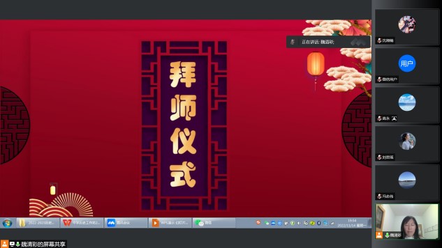 第四个环节便是隆重的拜师仪式。由于疫情原因,拜师仪式虽没能线下进行,但是在一声声“老师好”中,依旧能看到同学们的热情及对此次活动的期待。