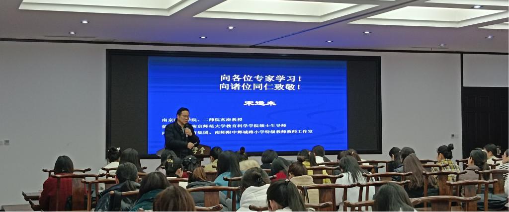 讲座结束前,宋老师对在场学员进行了衷心的祝愿,希望各位学员老师都能成为魅力教师,为尊严工作,为有意义工作,为有意思工作。讲座结束后,现场掌声雷动,学员老师对宋老师的精彩讲座表达了由衷的感谢。