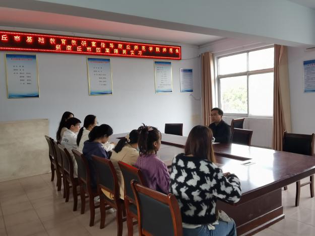 然后,高永老师带领坊员们和语文组、数学组的同学一起参加了商丘市教育体育局基础教研室老师的座谈会。高老师表示“教研工作就要深入基层”“教研就要从实践中来,到实践中去”。通过座谈,同学们更加理解教学技能的提升不是一朝一夕之功,不但要努力提高理论水平,更要多多实践,加强交流学习。