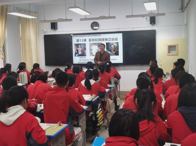 此次活动中,坊主赵华老师首先给同学们介绍了高中历史教学的基本情况,讲解了实践内容及注意事项。随后,同学们一起观摩了曹亚美、赵华两位老师讲授的课程——《亚非拉民族独立运动》。