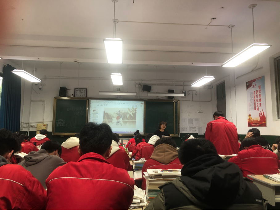 路遥老师执教《赤壁赋》一课时,先回顾了“十二天干,十二地支”,加深了学生的印象,为后面教学环节的顺利开展奠定了基础。在教学过程中,路老师主要从字句翻译、作者情感以及课文层次进行,并对学生进行提问,引导学生独立思考,让学生充分参与到课堂中。不仅如此,路老师还带领学生对课文进行朗读,在朗读中整体感知课文,增强了课堂学习氛围。