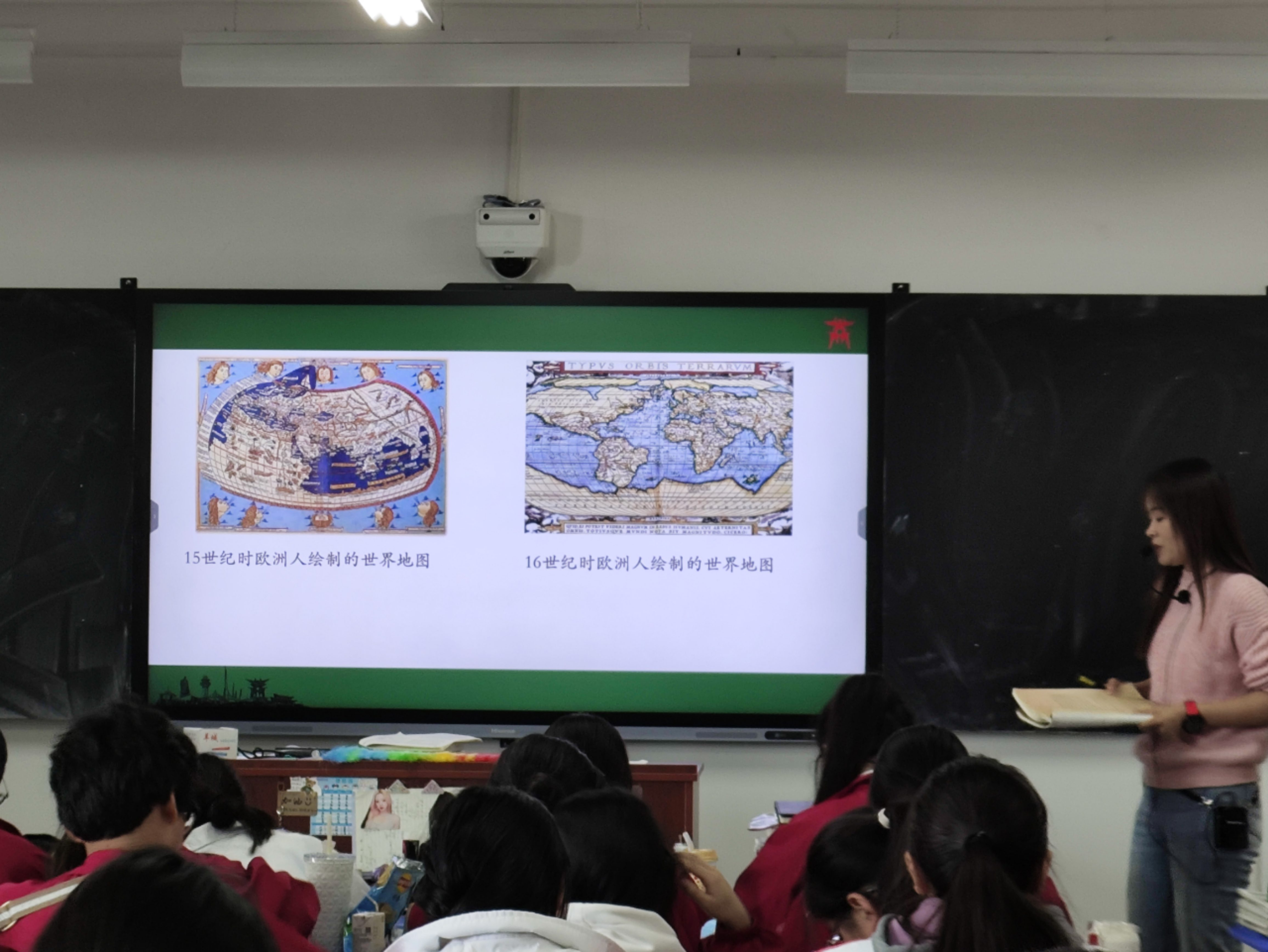 首先,坊员们一起观摩了李曼老师的课。课前,李曼老师已经让同学们提前预习了本节课的内容,即中外历史纲要下第三单元——世界近代史第一课《新航路的开辟》。课上,老师首先通过对“一个中心、两个方向、两个航线、四个人物”的提问使同学们自发思考并对本节课的轮廓有了一个大致的了解。接着,老师向同学们展示了本节课的学习目标和重难点,将同学们初中所学习的知识与本节课内容结合,进行了简要的分析阐述。随后,老师通过新航路和旧商路的对比引入本节课的内容,使同学们思考开辟新航路的原因和条件,老师通过对几则材料的分析以及清晰明了的图片并将课本知识和之前所学知识串联结合,使学生在学习新课的过程中也复习了已学内容。在全部讲述完成后,老师让同学们自主填写一个表格,并且通过一个世界地图使同学们对本节课的内容进行巩固。地图再一次展示“一个中心、两个方向、两个航线、四个人物”,与课程开头前后照应。最后,老师通过问题探究,让同学们了解了其他航路的开辟情况,对比了郑和下西洋和全球航路开辟的不同。在本节课的讲述中,李老师紧扣中学历史课程标准,重点突出,设计巧妙,展示了较高的历史教学素养。