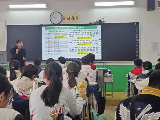 首先,坊员们在史老师的带领下深入高二(41)班和高二(39)班的历史课堂进行观摩学习。坊员们分别观摩了宋振东老师讲解的《商品流动与文化交流国际化》以及蒋丰慧老师讲解的《经济全球化带来的一系列影响》。两位老师在讲解的过程中都让学生积极参与到课堂中来,并通过解题的方式让同学们更好地理解本节课新内容。