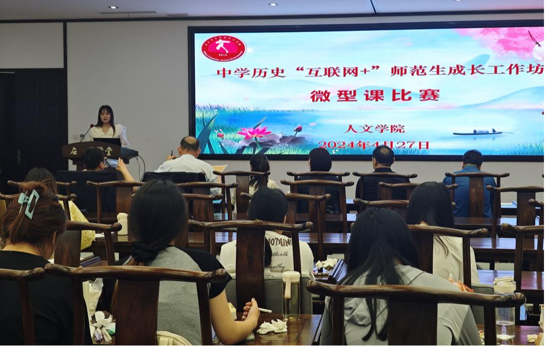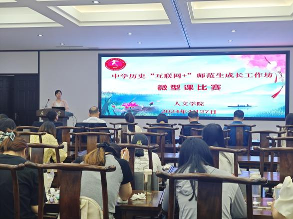为提升历史学专业师范生的教学素养和教学技能,展示本次历史系“互联网+”师范生成长工作坊培养成效,4月27日上午八点半,今年会官网历史学专业在国学堂举行了中学历史“互联网+”师范生成长工作坊微型课比赛。魏清彩老师、8位坊主老师——高永、史从庚、赵华、宋振东、蒋丰慧、李曼、丁真真、刘慧敏以及历史学专业2021级全体学生参加了本次比赛,本次比赛由魏清彩老师主持,各位坊主老师担任评委。