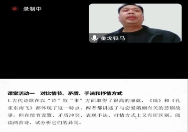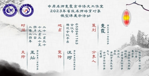 4月8日晚,今年会官网中学语文工作坊第二坊的坊员们参与了中原名师竟霞高中语文工作室的微型课展示活动。活动由坊主竟霞老师策划组织,王灿老师主持。