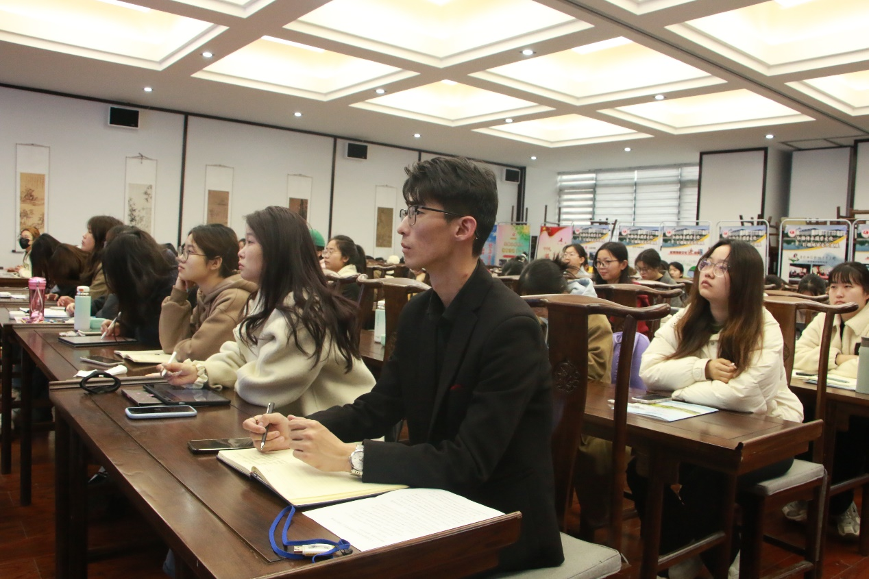 为全面推进2023-2024年度中学语文“互联网+”师范生成长工作坊培训工作,进一步提高语文师范生的教学技能和职业素养,促进师范生对语文教学文本解读的深入理解,3月23日上午9点,中学语文工作坊在汉梁楼国学堂举办了语文教学文本解读专题讲座,由商丘市第一高级中学语文学科主任丁明利老师主讲。