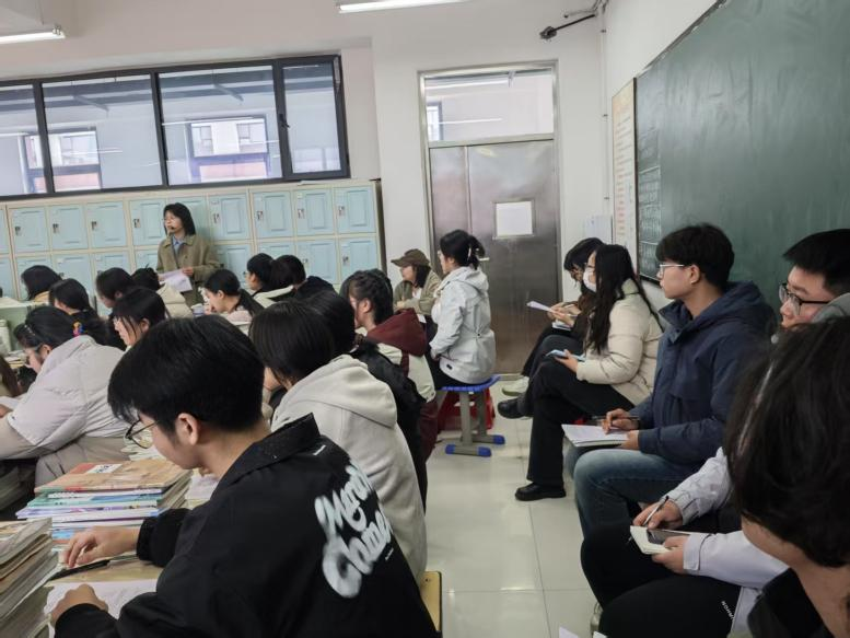 活动伊始,丁真真老师主持召开简短会议。她首先对本次习题课的课堂目标与内容进行概括,强调“以练促学、以评促教”的重要性,并贴心询问坊员近期学习进展,勉励大家通过实践不断精进教学能力。随后,丁老师给坊员们分发了讲评试卷,供大家提前阅读分析,为后续听课与研讨做好充分准备。