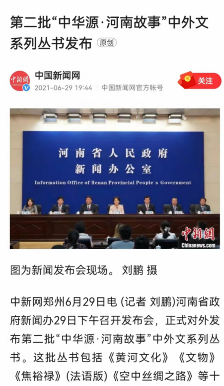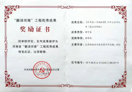 中心主任李可亭教授等人撰写的《中华源·河南故事·庄子》出版,并获评“翻译河南”工程优秀成果特等奖