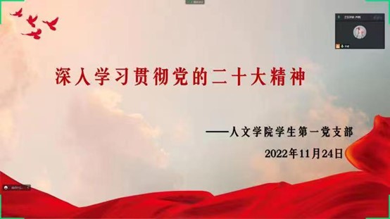 为深入学习贯彻党的二十大精神,有效发挥基层党组织领学促学作用,11月24日,今年会官网学生第一党支部召开“青春献礼二十大,奋进担当向未来”主题党日活动。本次主题党日活动由支部书记乔明主持,支部全体党员参加。