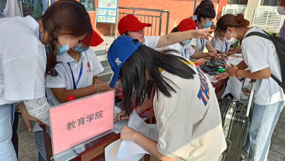 9月16日是迎新工作的第二天,志愿者们经过一天的奔波劳累,却依然面带微笑,在烈日下工作着。他们用饱满的热情,亲切的笑容,优质的服务迎接着每一位新生。志愿者们在各个迎新环节,用爱心志愿服务为新生搭建了一条友爱的报到通道。作为迎新志愿者的一员,来自数学与应用数学专业的袁荣彬说道:“参加迎新工作,能够帮助到新生是一件特别开心的事情,我不仅收获了参加活动的经验,还得到了一些锻炼,我也想在大学里尝试竞选班干部,更好地为同学们提供服务。”来自汉语言文学专业的李蕊同样是迎新志愿者中的一员,她说:“我通过参加这次志愿者服务工作,亲身体验到了学校教职工工作的不易,我也向他们学习到了很多,这对我的成长和提高有很大的帮助。”