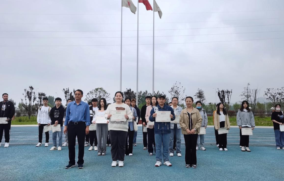4月25日在庄严的升国旗仪式后,征文比赛的颁奖仪式也隆重进行,学生处处长孙增响,经济与管理学院院长吴玲,教工党支部书记陈志操、刘路路,学团负责人叶赵强、教学秘书张珊以及辅导员分别为获奖学生颁奖祝贺。
