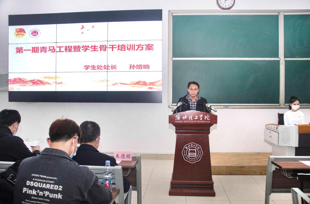 为引导青年学生坚定理想信念,全面提升大学生骨干的综合素质,进一步培养一批坚定的青年马克思主义者,校团委于4月28日下午在一教121教室举办了第一期“青年马克思主义者培养工程”暨学生骨干培训班开班仪式。校督导专员朱德顺、学生处处长孙增响、校团委负责人、各二级学院团总支负责人以及全体青马班学员共同出席本次活动。
