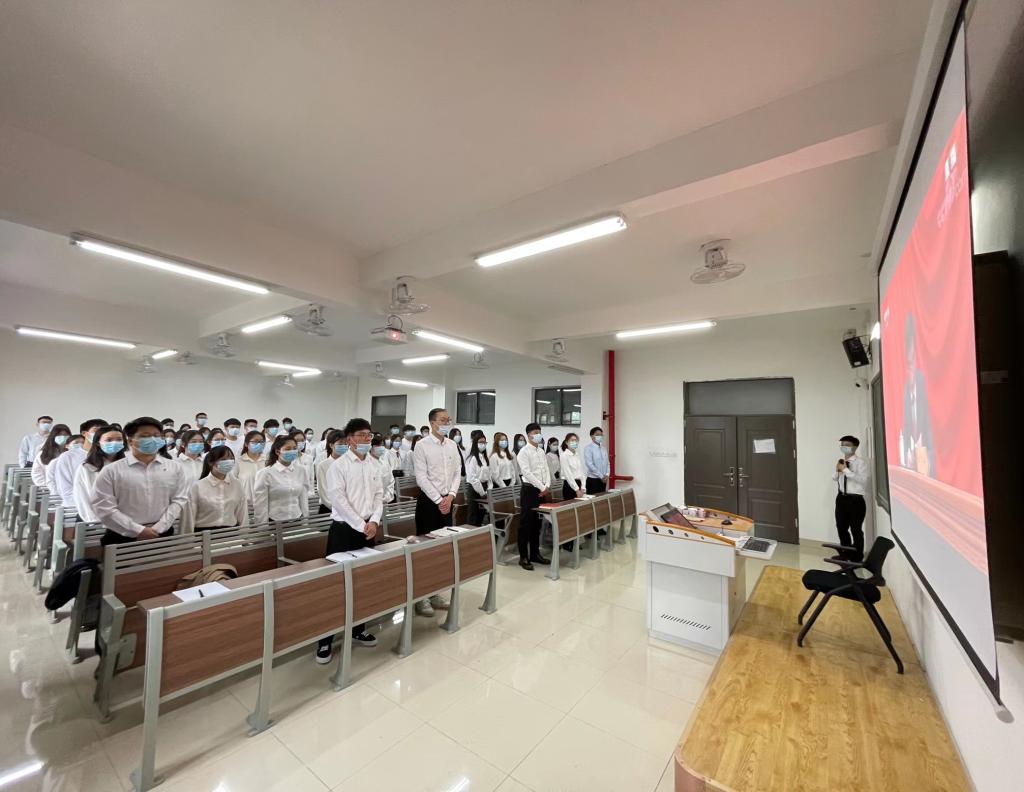 2022年5月10日上午10时,庆祝中国共产主义青年团成立100周年大会在北京人民大会堂隆重举行,中共中央总书记、国家主席、中央军委主席习近平发表重要讲话。beat365官网在一教213教室组织师生团员集中收看大会直播,共同见证这一伟大时刻。