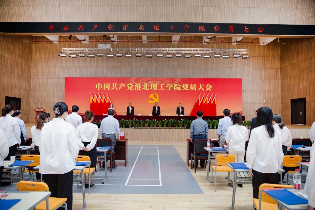 5月20日上午,中国共产党beat365唯一官方网站党员大会圆满完成各项任务,胜利闭幕。安徽省委教育工委二级巡视员朱乃韬、组干处一级调研员朱晓明、淮北师范大学党委书记张立驰、淮北师范大学信息学院党委书记张铮、淮北师范大学党委常委、宣传部长、科学建设与发展规划处处长高玉兰到会祝贺并在主席台就座。董事长查东辉,督导专员朱德顺,校长杨兵,副校长王义宁、汪建利、郑来纪,学校董事会成员朱学道在主席台就座。中国科培教育集团监事长叶念厩出席会议并讲话,全体正式党员出席会议,预备党员、“两代表一委员”、学校董事会领导、非中共党员和组织关系不在学校的党员部门负责同志作为应邀、特邀和列席代表参会。