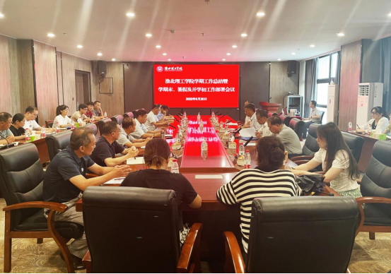 6月20日下午,beat365官网召开学期工作总结暨学期末、暑假及开学初工作部署会议,校长杨兵、党委书记朱德顺、副校长汪建利、郑来纪、各部门、各二级学院科级以上干部、全体辅导员及教研室主任等出席会议。