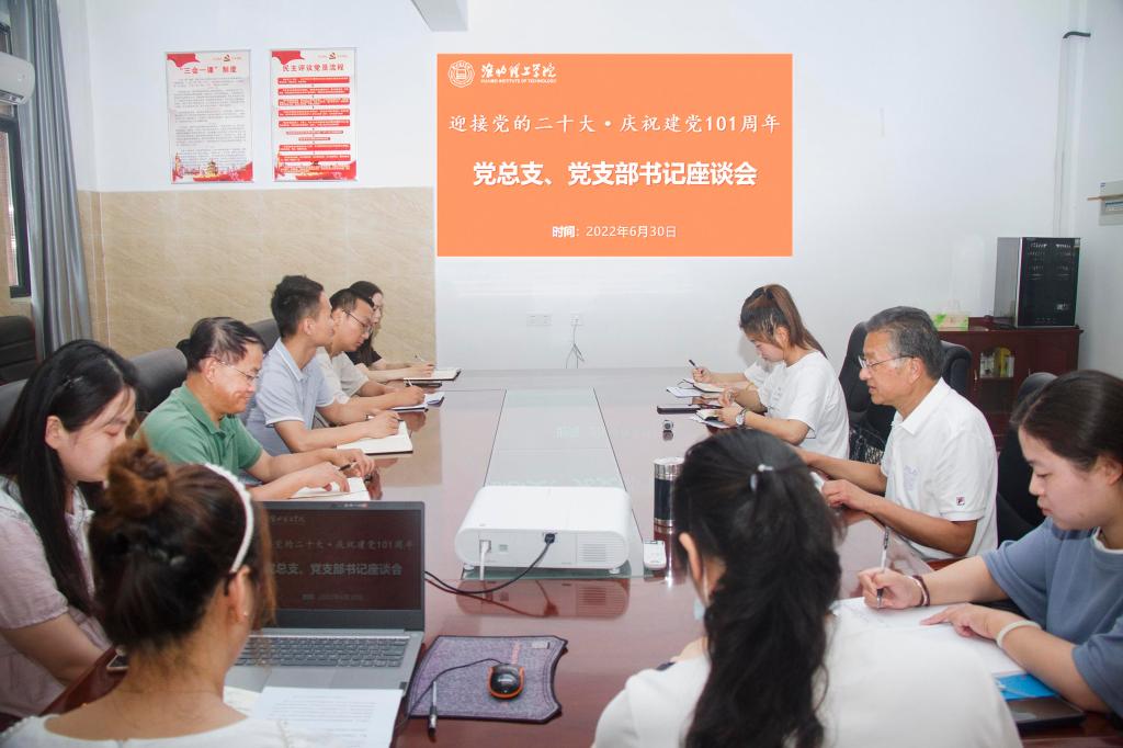 为庆祝中国共产党成立101周年,喜迎党的二十大胜利召开,大力弘扬伟大建党精神,激励各党总支和广大党员发挥战斗堡垒和先锋模范作用,提升基层党组织的组织力、凝聚力、战斗力,6月30日上午,校党委组织开展党总支书记、党支部书记座谈会并举行重温入党誓词活动。会议由校党委书记、督导专员朱德顺主持。