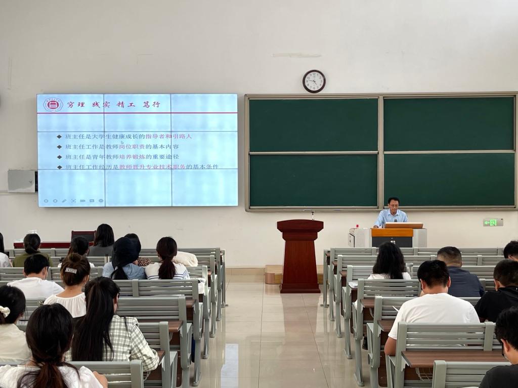最后,孙增响从班主任的任职条件、工作职责、聘任办法以及管理与考核等四个方面为2021级、2022级学生班主任做了专题培训,并结合自身工作经历,向班主任传授了学生工作规律、工作方法等宝贵经验。