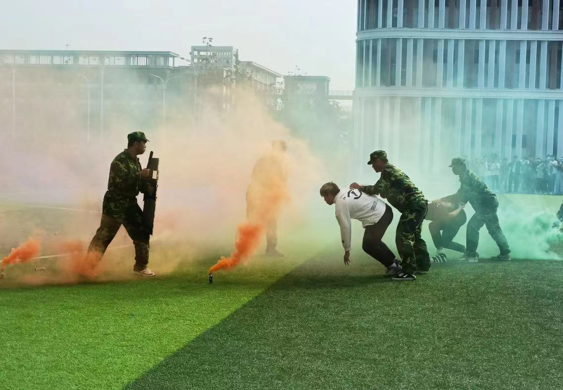 为了检验军训成果,新生们进行了军训成果展示及表演。新生们经过半个月快节奏、高强度的训练后,以威武的军姿、昂扬的面貌展现着自己的自信风采。在随后的分列式方阵检阅、队列操表演中,新生们动如蛟龙出海、静似猛虎卧山。伴随着激昂的音乐,在仿真硝烟中震撼登场的是防爆演练队,在模拟情景中演练了索敌、对敌等阵型,并上演了打击“黑恶势力”的戏码,意义深远。迎来全场师生的阵阵掌声和喝彩声,为大家带来了一场精彩的热血沸腾的表演。精彩的汇报表演成为新生们进入大学的第一份“答卷”,收获了大学生涯的第一笔财富。