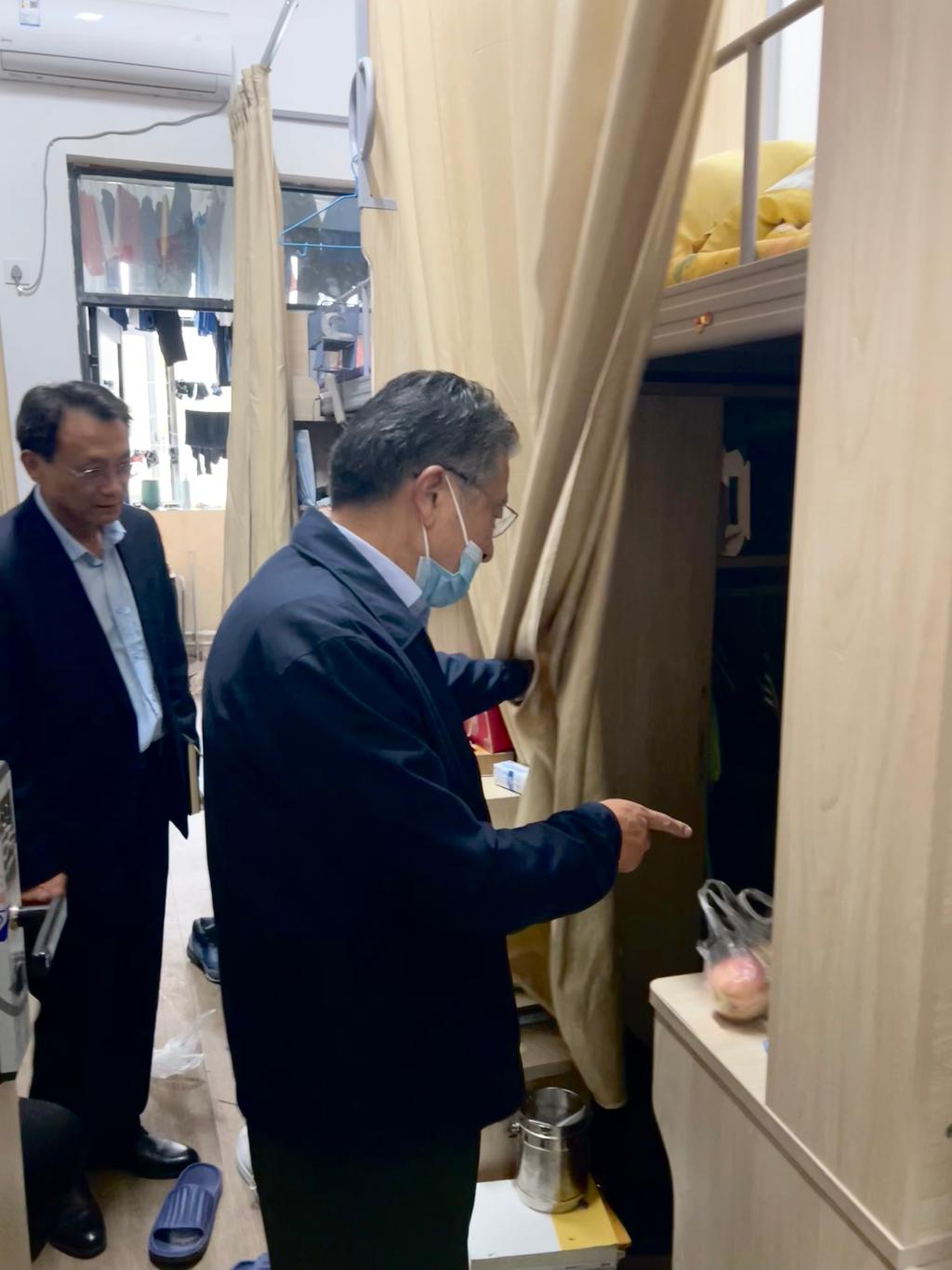 在走访过程中,朱德顺与同学们进行了亲切交流,深入宿舍排查安全隐患,详细询问学生生活情况、学习情况及毕业打算等,了解学生宿舍卫生、消毒和通风情况。朱德顺叮嘱学生要严格遵守疫情防控期间校园管理要求、做好疫情防控常态化下的自我管理和个人防护,养成良好的生活卫生习惯,注意身体健康,保持积极的心理状态,共同营造安全有序的校园环境。
