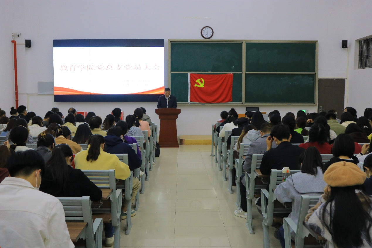 会议号召全体共产党员高举习近平新时代中国特色社会主义思想伟大旗帜,不忘初心、牢记使命,始终保持昂扬向上的斗志、务实奋进的作风,以直面现实、笃行不怠的精神状态,团结在一起,奋斗在一起,用日日新、月月新、事业新的创业精神,创造教育学院美好的明天!