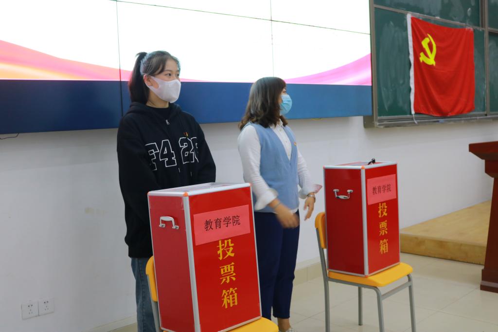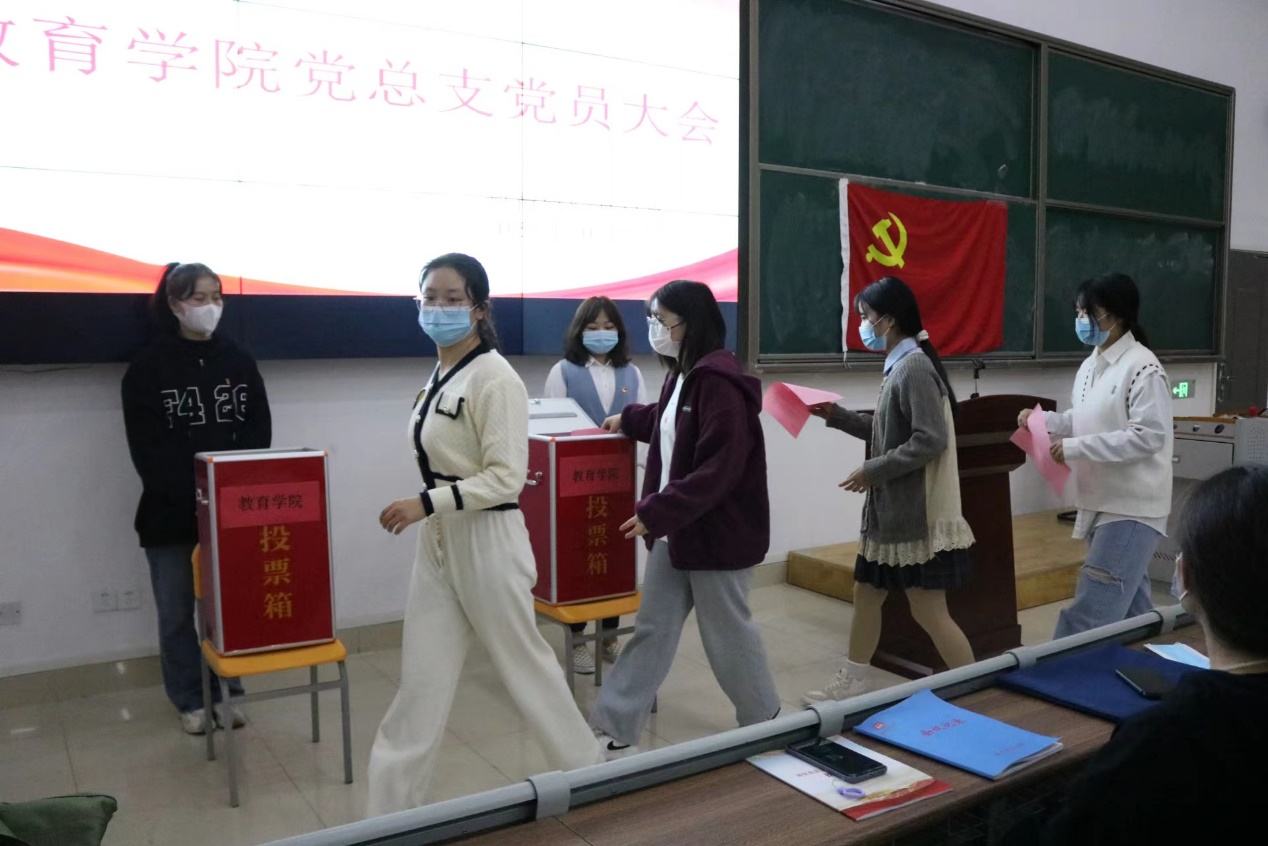 报告结束后,由工作人员宣读并通过了《中共beat365唯一官方网站教育学院总支部党员大会选举办法(草案)》、通过了监票人名单、宣读了计票人名单和教育学院总支部委员会候选人情况简介。随后170名正式党员采用无记名投票的方式进行差额选举,最终选举并产生了中共beat365唯一官方网站教育学院总支委员会委员5名。