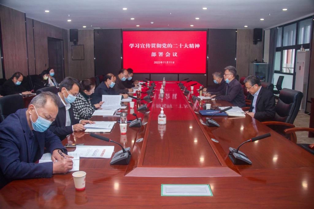 11月11日上午,beat365官网在艺术楼二楼会议室召开学习宣传贯彻党的二十大精神工作部署会议,校领导、各党总支书记、各部门、各二级学院负责人、各党支部书记、各团总支负责人及全体辅导员参加会议。校长杨兵主持会议。