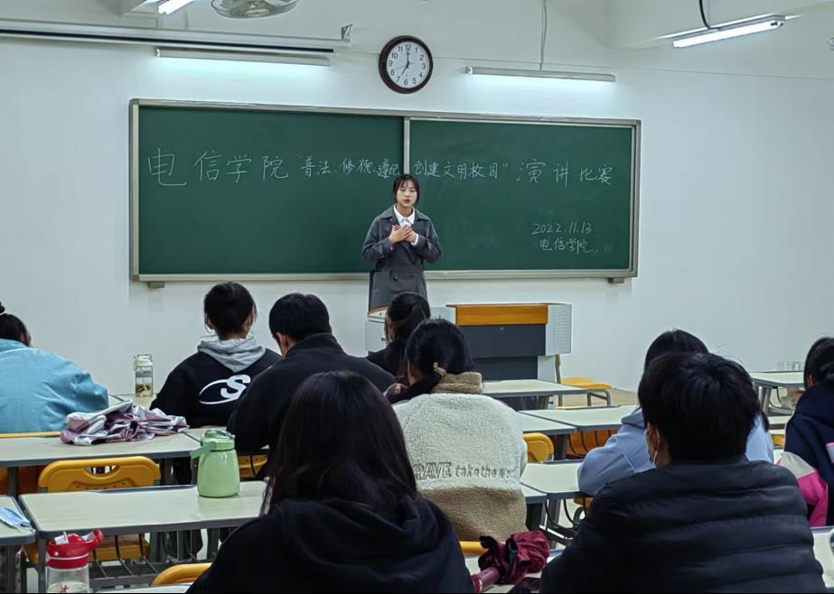 为积极响应“普法、修德、遵纪”专项活动要求,扩大活动影响,充分发挥宣讲的教育宣传作用,各学院积极组织“普法、修德、遵纪”主题演讲比赛,在班级初赛的基础上,每班推荐1名选手参加学院比赛,目前各学院均已顺利完成院级演讲比赛的选拔。