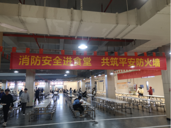 学校利用线上线下两种途径,通过校园网络、微信、电子显示屏等媒介推送消防安全知识、消防案例以及滚动播放消防宣传教育片、消防安全科普视频、安全提示等内容;利用主题宣传展板、海报、横幅等,分别在办公楼、教学楼、学生公寓楼、食堂、广场等显著位置进行展示,积极营造浓厚的消防宣传活动氛围。
