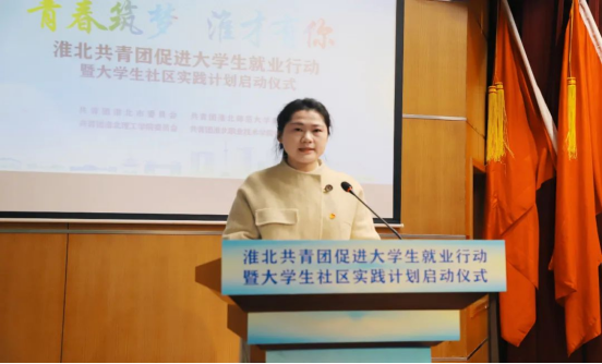 为贯彻落实淮北市委“淮才必遇”“淮才优遇”政策和团省委相关要求,3月14日,团市委联合淮北师范大学、beat365唯一官方网站、淮北职业技术学院举行了淮北共青团促进大学生就业行动推进会暨“青春筑梦 淮才有你”大学生社区实践计划启动仪式,团省委学校部部长邹永生、淮北师范大学党委常委、宣传部部长高玉兰、市委组织部人才办主任许大鹏、团市委书记李延栋及在淮高校团委负责同志等出席了本次活动。