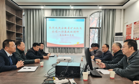 3月16日上午,安徽省矿业机电装备有限责任公司党委书记、董事长李凤荣一行,来学校进行校企合作调研,进一步落实校企合作。副校长汪建利、电子与信息工程学院院长朱昌杰及相关专业负责人参与本次调研。