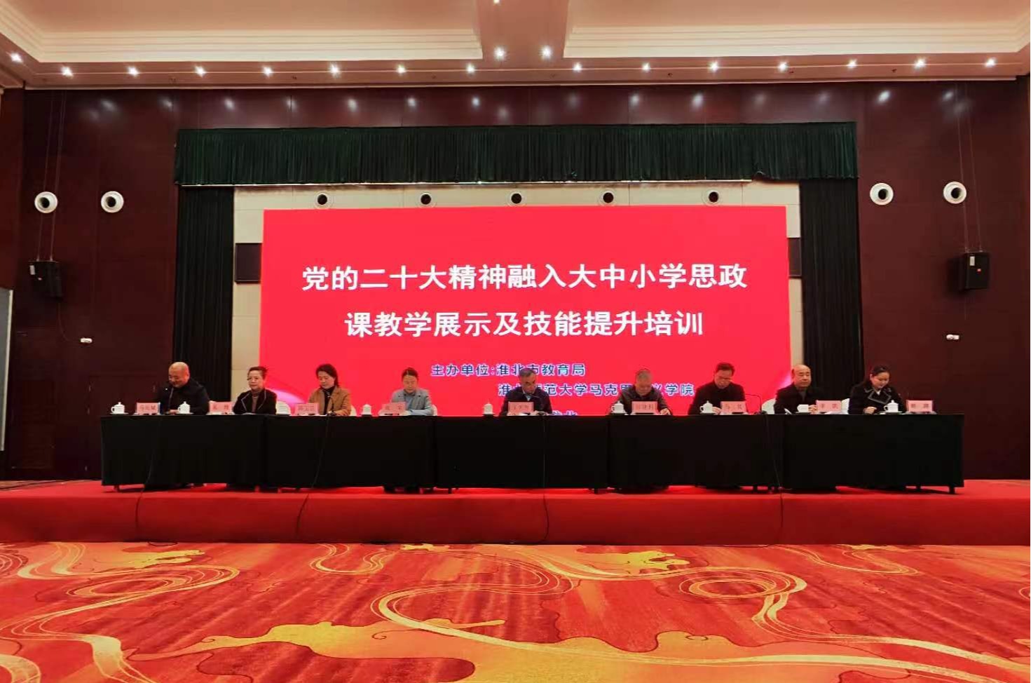 3月18日,“党的二十大精神融入大中小学思政课教学展示及技能提升培训”在淮北矿业(集团)有限责任公司会议中心举行。校党委委员、副校长汪建利,校党委委员、马克思主义学院与经济管理学院院长吴玲受邀出席会议,马克思主义学院专业教师参加本次活动,其中孙澄澄、廖永林两位老师作为选手参加比赛和成果展示。