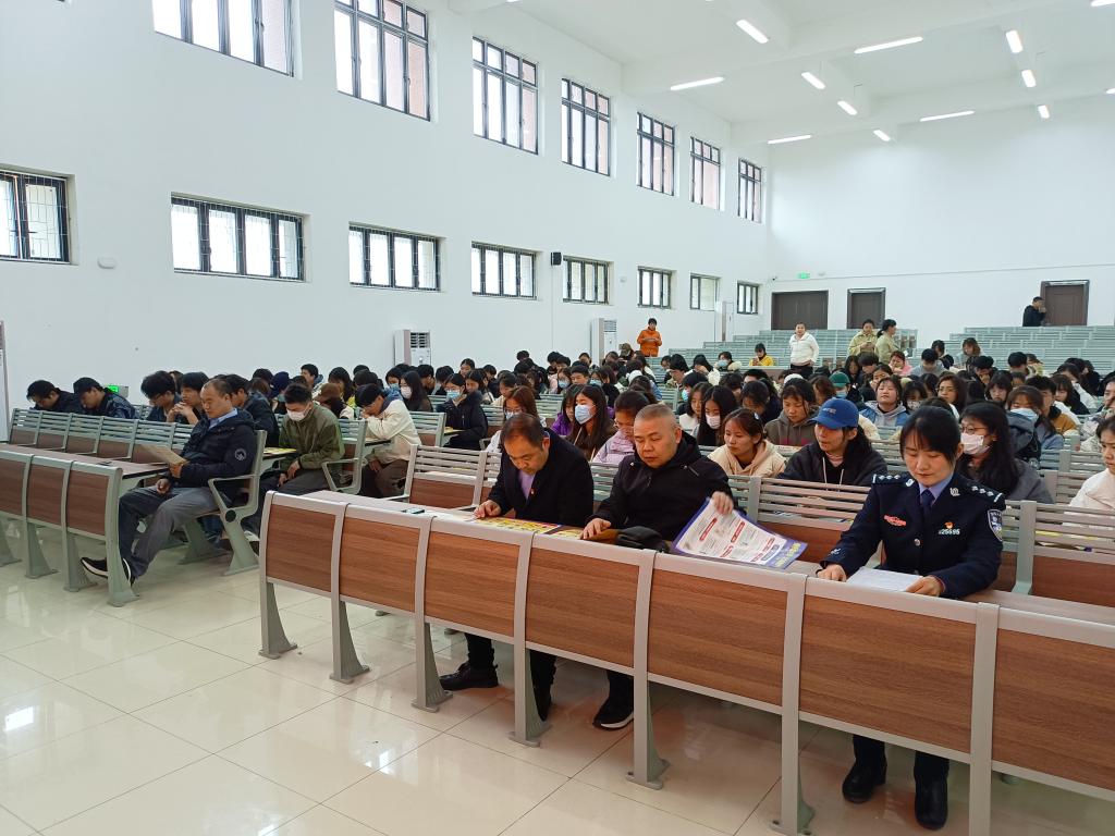 为进一步做好校园反电诈宣传教育工作,增强大学生的法制观念和安全意识,切实提升beat365官网师生的防骗意识,深入推进平安校园建设。3月22日下午,学校联合高岳街道派出所及李洼村,在一教121教室组织开展反邪教暨反电诈宣传教育活动。高岳镇综治办主任刘娟、李洼村党总支副书记钱卫红、高岳街道派出所民警张洁雪参加活动。副校长郑来纪、学生处负责人、后勤保卫处负责人及200余名师生出席活动。