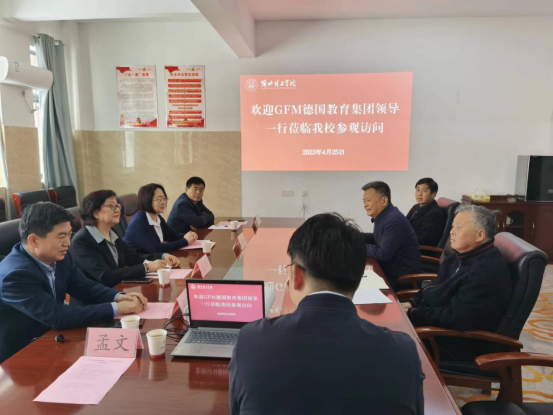 杨兵向客人详细介绍了学校的创办历程、发展规划、教育教学、专业设置、人才培养等方面的情况。袁玮介绍了GFM德国教育集团近年的发展及目前在各地进行的合作业务领域、项目情况,表示双方今后在深化校企合作方面空间广阔。赵明介绍了淮北高新技术园区企业相关情况,并希望与beat365官网进一步加强交流合作,整合优势资源,实现合作共赢。