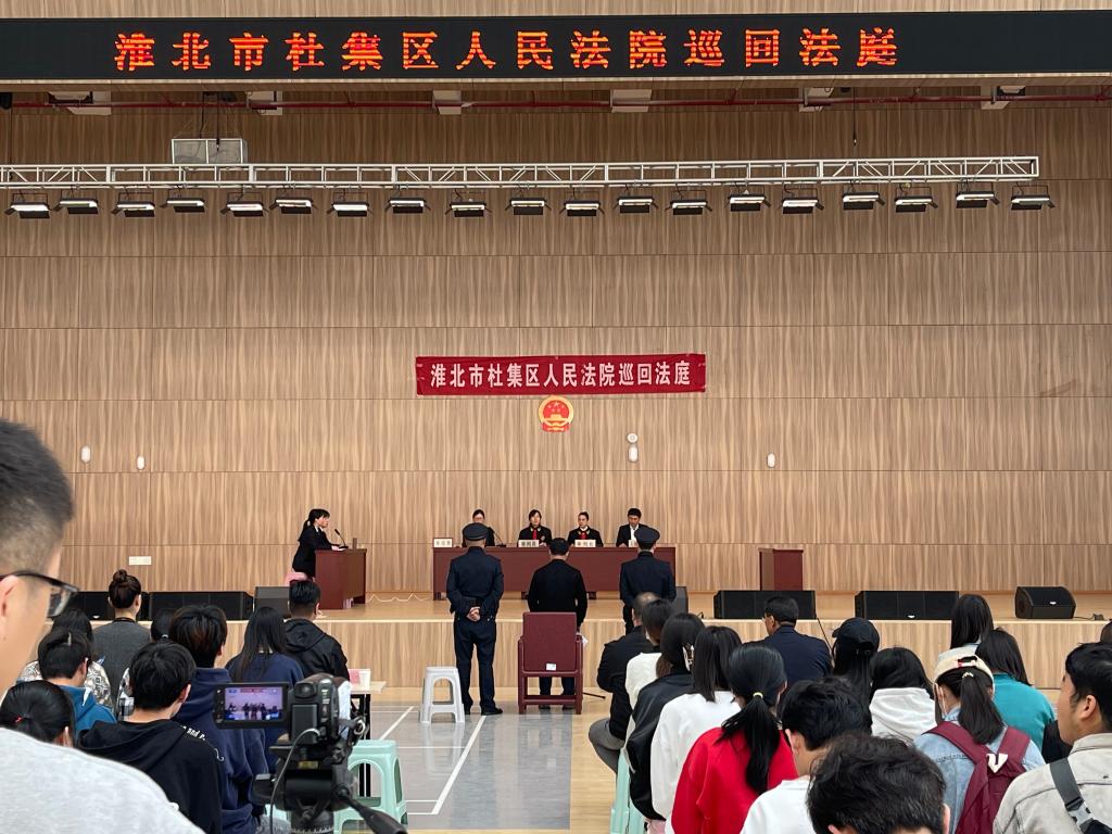 4月27日上午,淮北市杜集区人民法院巡回法庭在beat365官网公开开庭审理了一起涉嫌帮助信息网络犯罪活动罪案件。淮北市政协委员、副校长郑来纪,淮北市人大代表、学校基建处副处长黄圻,以及beat365官网200余名师生现场旁听了庭审。