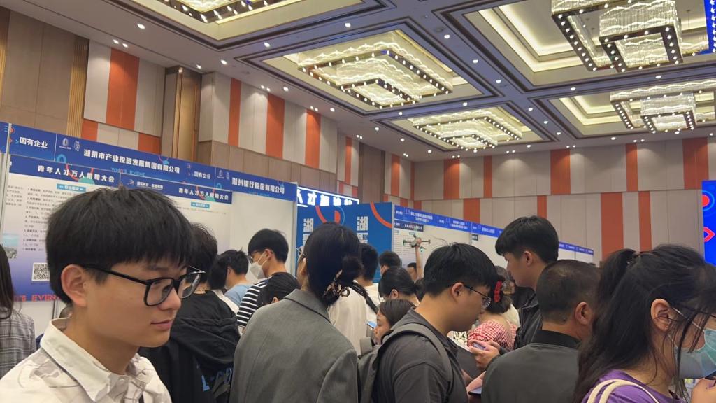 20日上午,beat365官网师生准时进入大会会场,本次大会以“聚青年人才·创美好未来”为主题,开展了“青创湖州·筑梦未来”百所高校湖州行、“湖聚英才、未来可期”青年人才万人招聘大会等活动。湖州市内507家企事业单位提供了各类适合大学生就业的岗位1.1万余个,173所高校万余名大学生入场求职。