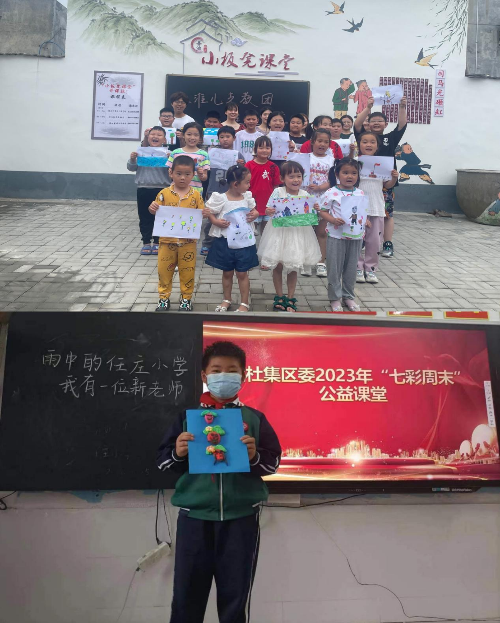红淮儿支教团自成立以来,利用周末特定时间与淮北市杜集区团委合作开展“七彩周末”和“小板凳课堂”等活动。活动中,红淮儿支教团前往任庄小学、段庄社区等地开展了音乐、手工、舞蹈、美术、等趣味多彩特色课程。根据每个村级小学的不同需求,商讨制定了“特色兴趣课程”、“日常教学巩固”、“安全防疫防控”、“教育关怀服务”、“国情党史学习”等多样教学计划,致力于把先进的教育理念、教育思想、教育方法、教育智慧,普及到更多的村级小学。