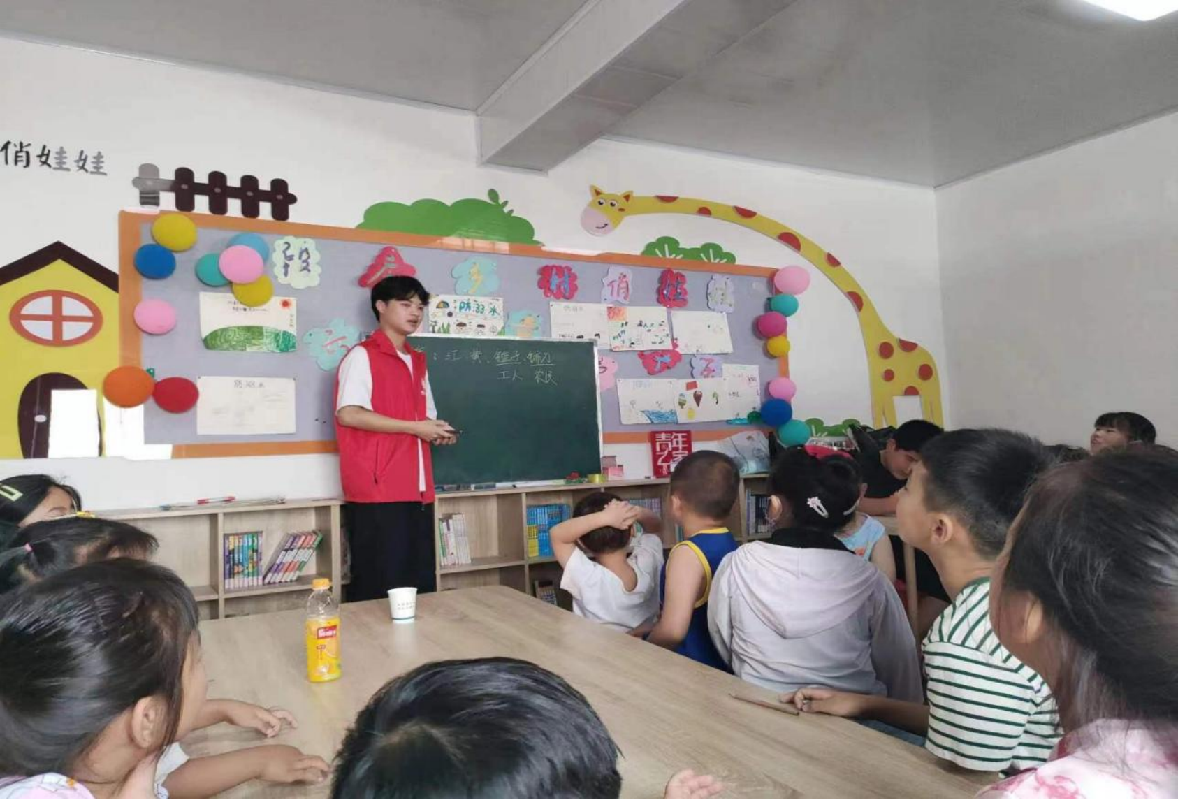 走向基层,播种梦想。赓续红色精神,筑牢信仰之基。从讲述建党精神、中国革命精神的历史故事,向孩子们讲授了党的历史发展,了解“七一”建党节由来和党旗党徽构成及其内涵,孩子们深刻感受到党的丰功伟绩和伟大贡献,红色精神润入童心。志愿者问孩子们长大之后想成为什么样的人,孩子们说画家、警察、老师、科学家等等。同时,志愿者引导孩子们从现在做起,学党史、跟党走,牢固树立爱国爱党意识,激励着孩子们不断学习党的光辉历史,赓续红色精神,传承红色基因,为做好社会主义建设事业的“接棒人”而努力。