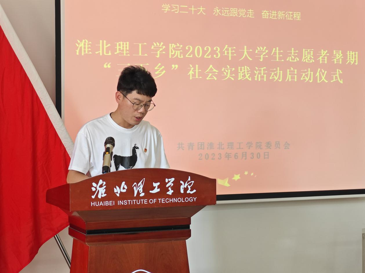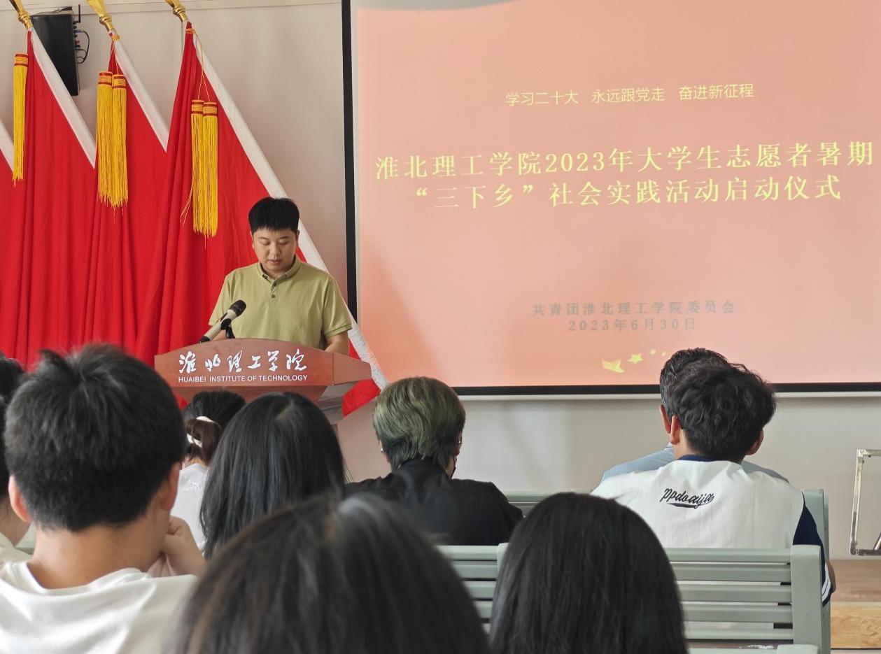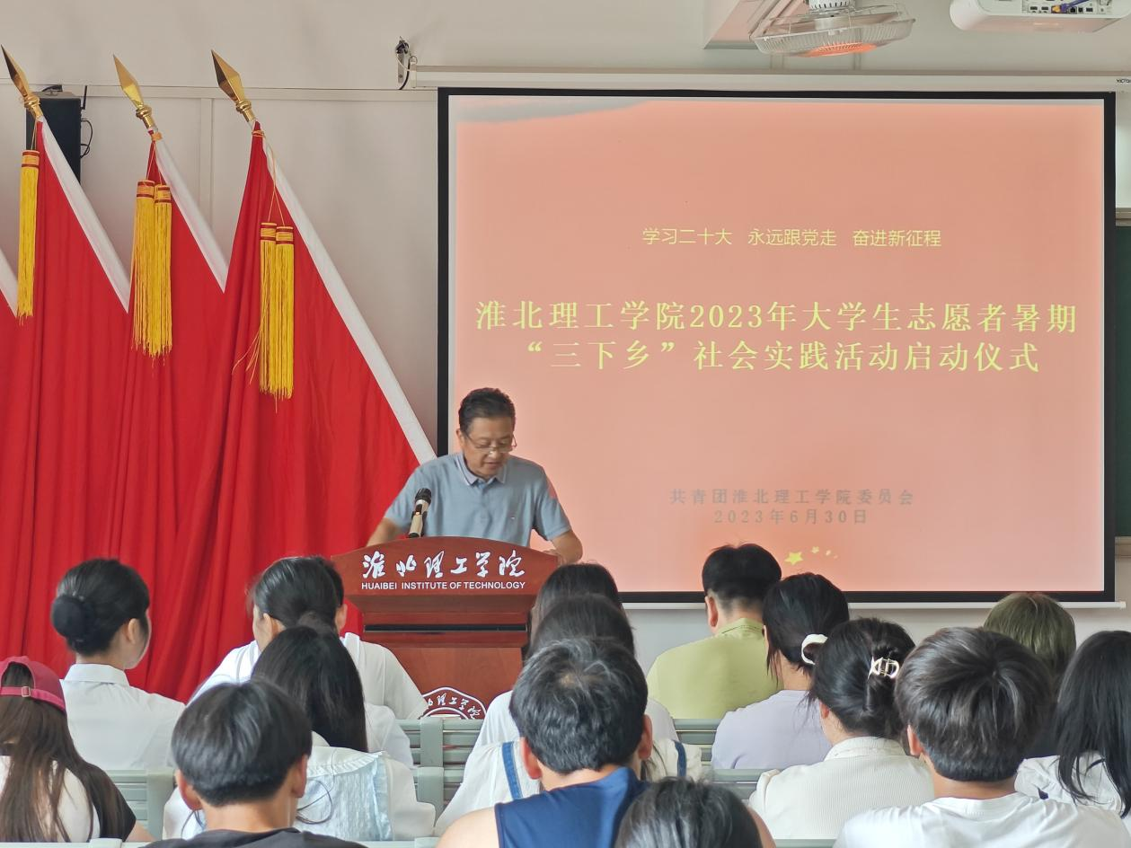 为深入学习宣传贯彻习近平新时代中国特色社会主义思想,贯彻落实习近平总书记关于青年工作的重要思想,引导和帮助广大青年学生上好与现实相结合的“大思政课”。beat365官网于6月30日下午在二教422教室举行2023年暑期“三下乡”社会实践活动启动仪式。校党委书记、督导专员朱德顺、学生处处长孙增响、校团委和院团总支书记出席仪式。会上,校党委书记、督导专员朱德顺就开展好2023年暑期“三下乡”社会实践活动提出三点要求:一是严格指导管理,确保安全有序;二是保持谦虚谨慎,学会虚心请教;三是充分发挥所学,务必取得实效。将所学知识与基层工作经验相结合,学会多看、多思、多问。
