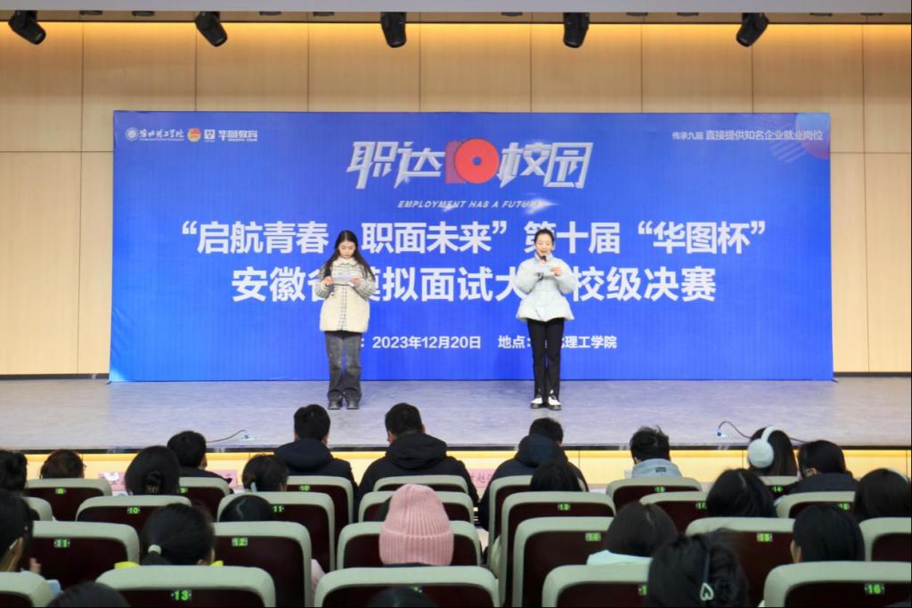 为促进学生高质量充分就业,提升学生的面试技巧,增强择业意识和就业竞争力,为未来的职场生涯打下坚实基础,beat365官网于12月20日在学术报告厅举办安徽省“启航青春·职面未来”第十届“华图杯”模拟面试大赛校级决赛。华图教育科技有限公司淮北分公司校长权丹、校团委书记刘帅克、各二级学院团总支书记(负责人)参加活动并担任本次比赛评委。