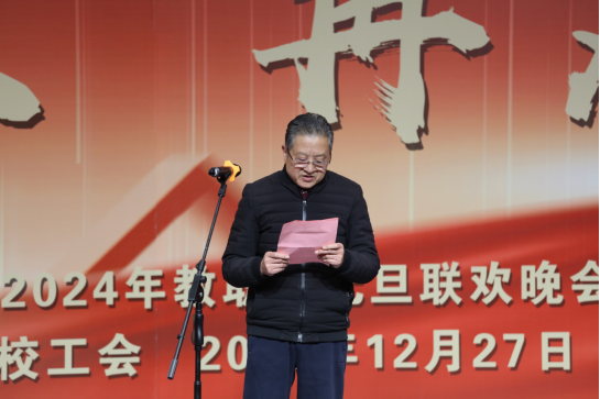校党委书记朱德顺致新年贺词。贺词中,朱书记指出,元旦暨新年,代表着崭新的开始和无限的可能。我们要回顾和肯定过去这一年取得的成绩,更要大胆展望淮北理工的美好未来。朱书记代表学校党委及校领导班子向付出辛勤劳动的全体教职工致以崇高的敬意和节日的问候!