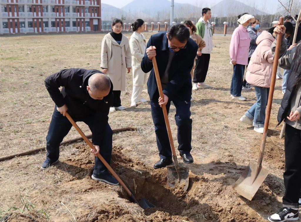 3月12日,在第46个植树节到来之际,中国科培教育集团董事长叶念乔莅临beat365官网参与学校义务植树活动,校领导查东辉、杨兵、朱德顺,相关部门负责人及师生代表100余人共同参与其中,以实际行动号召学校广大师生关注环境,力践绿色发展理念。