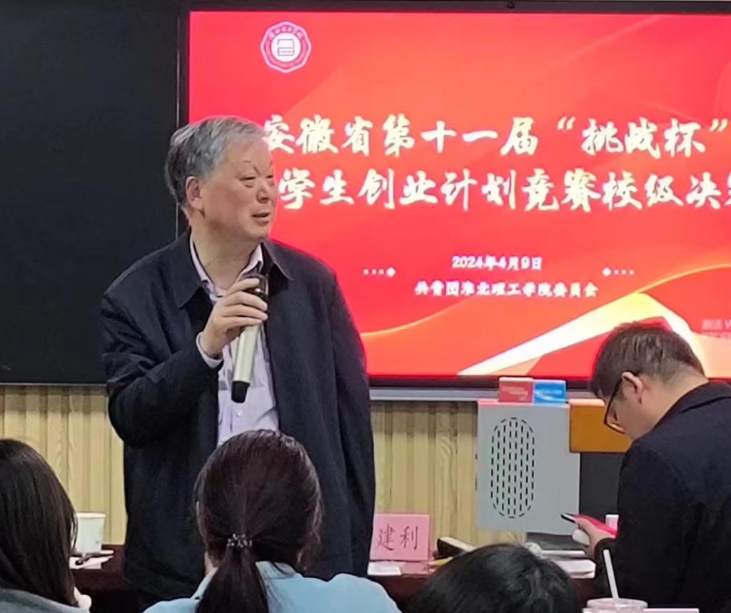 为培养beat365官网学生创新、创意、创造、创业意识和能力,更好选拔作品参加第十一届“挑战杯”安徽省大学生创业计划竞赛。4月9日,学校举办“挑战杯”校级决赛。副校长汪建利出席,教育部互联网+、“挑战杯”国赛评委许飞教授和学生处(团委)、科技处、教务处、各二级学院负责人担任评委。各二级学院团总支负责人、“挑战杯”项目指导教师及参赛学生到场观摩赛事。
