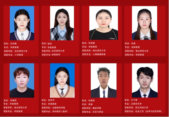 关会敏,2022级学前教育专业,考取安庆师范大学,教育学院,小学教育专业。