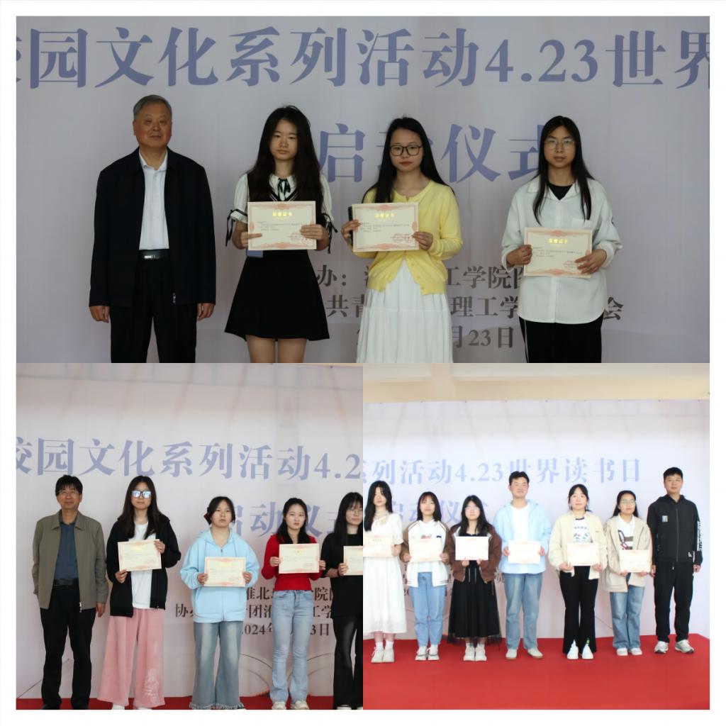 4月23日上午,学校在第二教学楼一楼大厅举行校园文化节系列活动暨4.23世界读书日活动启动仪式。副校长汪建利、校图书馆、校团委负责人出席启动仪式,并为“校友荐书征文比赛”和“读者之星”活动获奖选手颁奖。