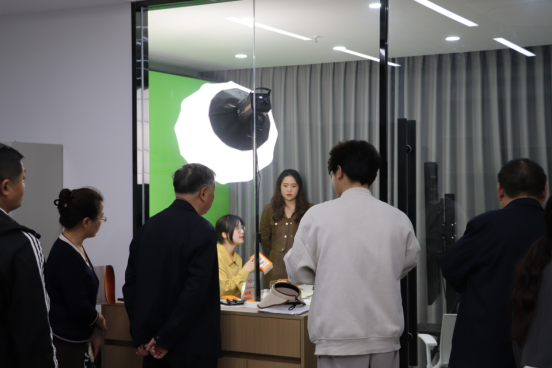 成果展示活动共分为两个环节,第一个环节为学生作品展示。本次作品共展示了三部宣传片,分别为:学院宣传片、淮北文旅宣传片、学校宣传片。宣传片画面精美、内容丰富、情感真挚,不仅展示了学院、淮北文旅、学校的风采和特色,也充分展现了学生的组织和策划能力、团队协作能力以及创新思维和创意能力等多项实践能力。第二个环节为观摩学生直播。在新媒体营销实训室,学生们为观摩嘉宾带来了一场热情洋溢的直播秀,包括直播场景的搭建、脚本创作、直播间互动的设计等,强大的吸粉能力和后台不断上涨的实时数据,显示出经管学院在教育发展新道路上的进取精神与创新意识。与会人员被高质量的集中实践成果所吸引,对集中实践有了更深刻的理解。
