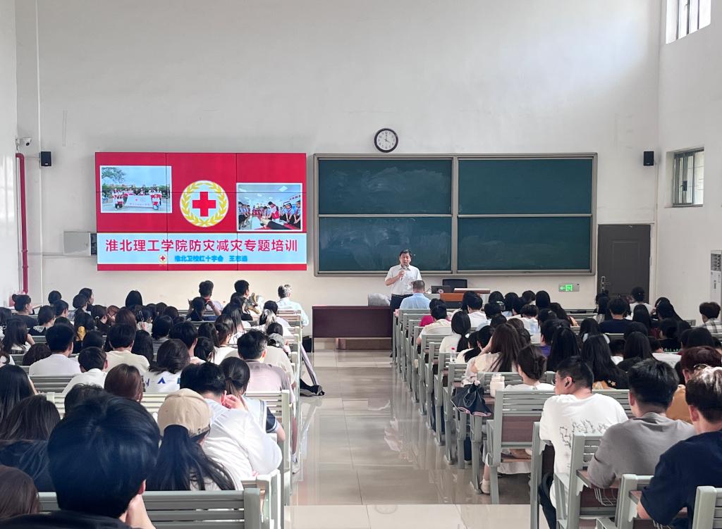 为做好第16个全国防灾减灾日宣传工作,按照学校统一安排,5月16日下午,学校特邀淮北卫校、红十字会专家王志远老师作防灾减灾专题培训,副校长郑来纪,校办、学生处、团委负责人及师生代表共200余人参加培训。