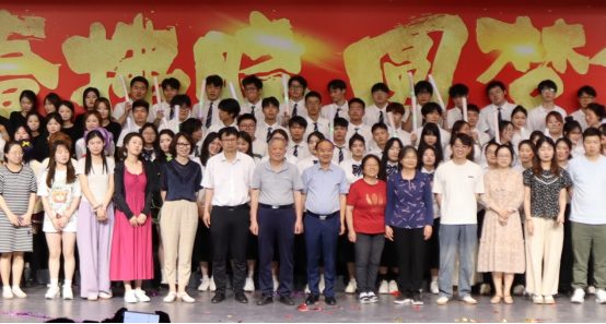 全体毕业生共同上台,与老师们合影留念。他们回顾了在校期间的点点滴滴,表达了对老师的感激之情,也分享了对未来的憧憬和期望。同学们纷纷表示,将永远铭记电信学院和老师的教诲,努力成为社会的栋梁之才。